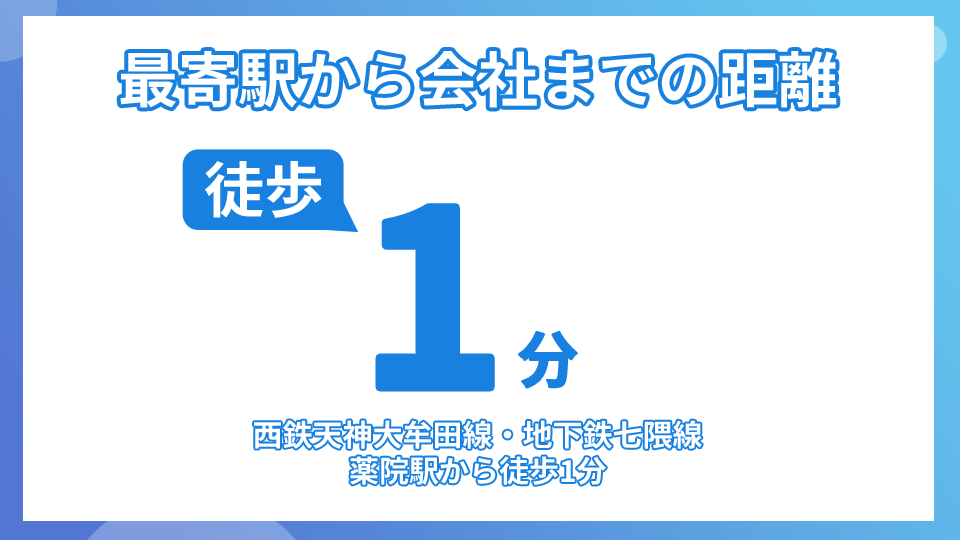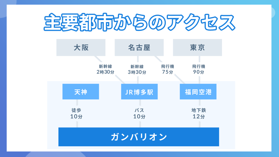 (※)現在は博多駅からガンバリオンの最寄駅である薬院駅まで地下鉄1本で移動することが出来ます。面接等で県外からガンバリオンにお越しになる際は地下鉄での移動をおススメします。