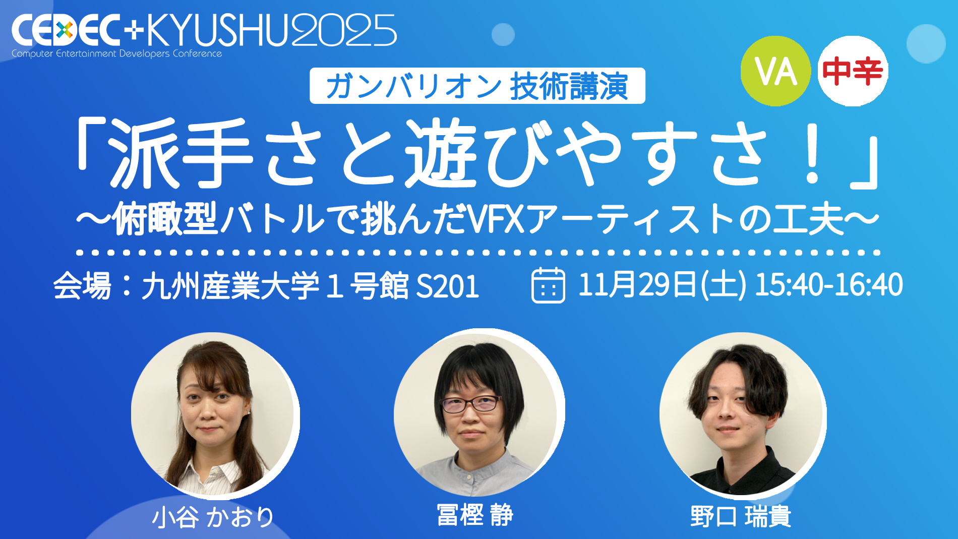 福岡市の九州産業大学にて『CEDEC+KYUSHU 2025』が開催され、ガンバリオンのアーティストスタッフが技術講演を実施しました。