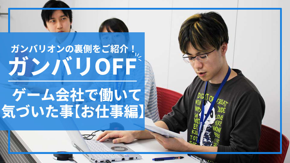 社内アンケートを通じてガンバリオンスタッフの雰囲気や考え方等をお伝えしています。ガンバリオンスタッフ独自の解答やこれからゲーム業界を目指す方々の参考になるような回答もあり、スタッフの雰囲気を掴むのに最適です♪