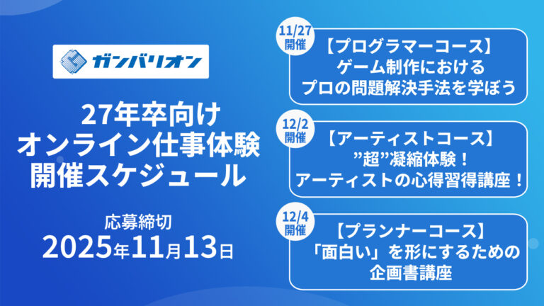 現役ゲームクリエイターと共に学ぶ27卒向け冬季1day仕事体験をオンラインで開催!(マイナビ2027)